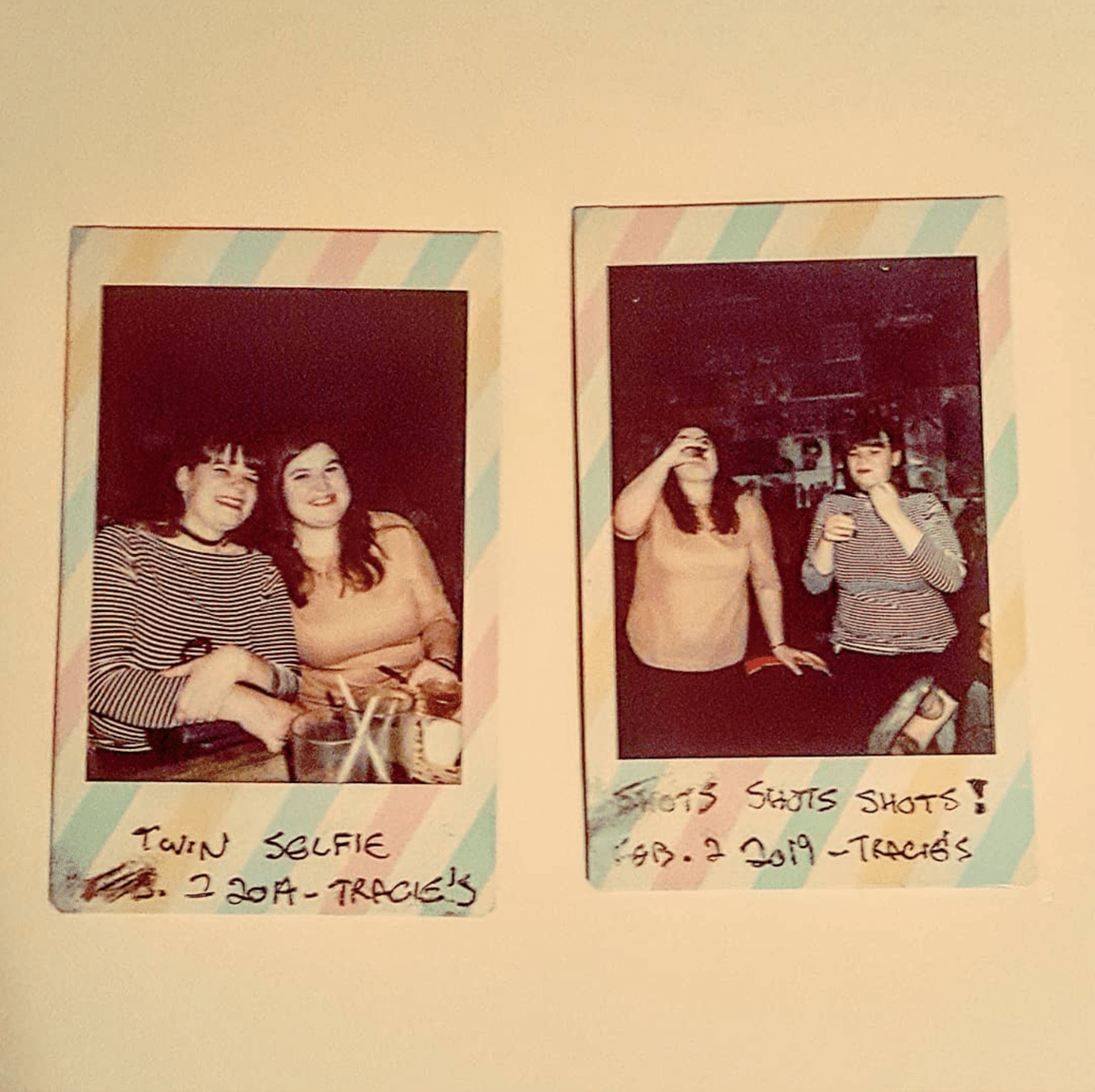 (Pictures of myself and my sister from our party taken with my Polaroid camera.)